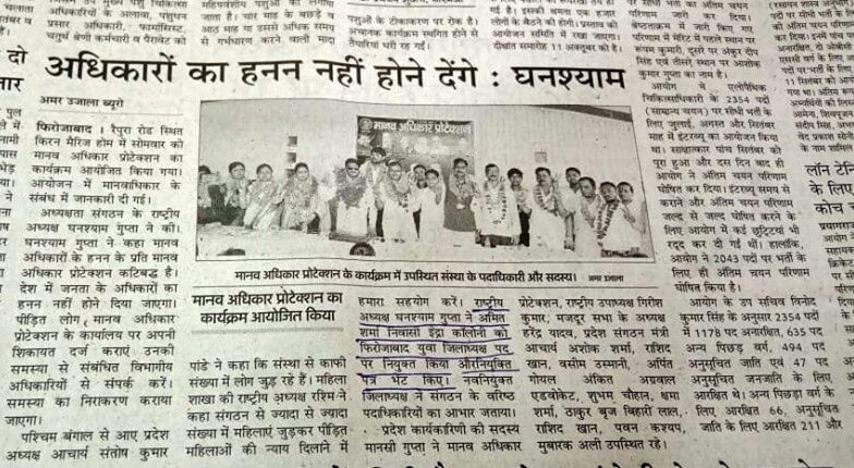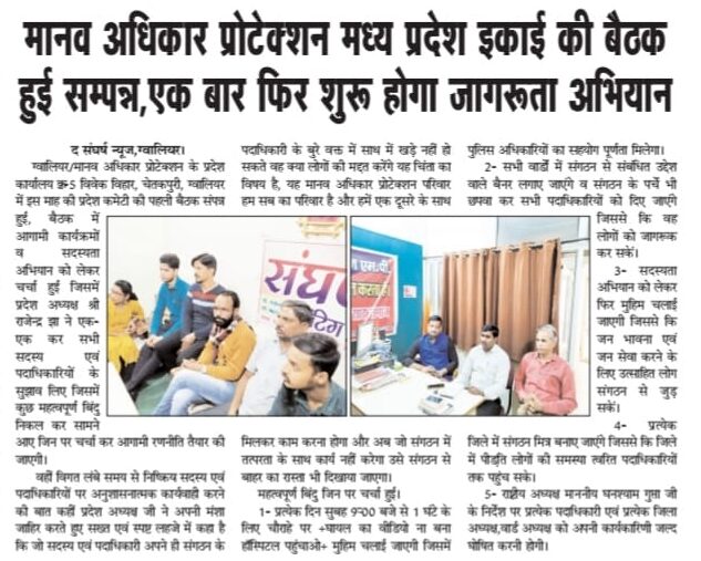 मानव अधिकार प्रोटेक्शन द्वारा किये जन-जागरूकता के कार्यक्रमों की फोटो गैलरी सम्माननीय राजनेताओ एवं प्रशानिक अधिकारियो से समय समय पर मानव अधिकारों की लिए चर्चा हुई उस समय की फोटो मानव अधिकार प्रोटेक्शन की पदाधिकारियों की नियुक्तिपत्रो एवं सम्मान और परिचय पत्र की जानकारी मानव अधिकार प्रोटेक्शन द्वारा समय समय हुए आयोजनों की क्षेत्रीय एवं राष्ट्रीय संचार पत्रों में प्रकाशित ख़बरें।